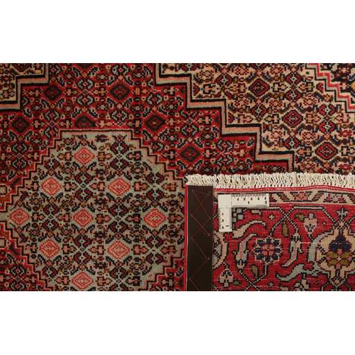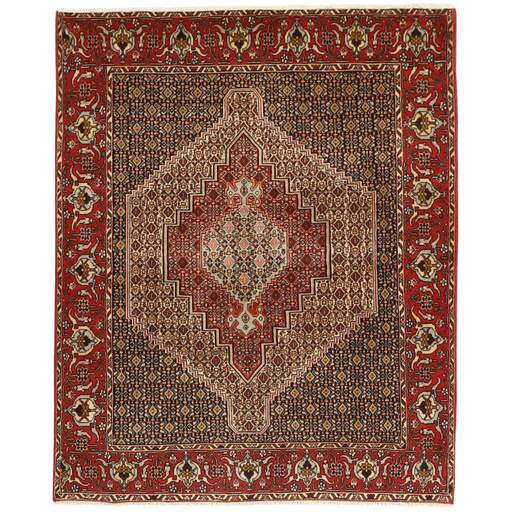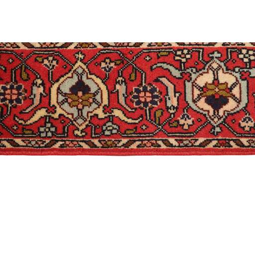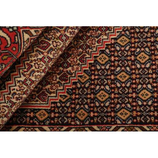 Seneh in Sanadaj is the capitol of the Kurdistan province of north-western Iran, and has about 300.000 inhabitants, most of them Kurds from the Gurani Tribe. Seneh rugs are easily recognisable by their knotting method, as well as the pattern colours and wool used. They usually have a simple weft, and the back of the rugs is often coarse and grainy, as the wool is spun tightly by hand before the knotting. Sometimes, a firm Bidjar-like knotting can be seen. Characteristically, the colours are deep blue, green, dark red, and white. Seneh wool is among the best qualities of wool in Iran: firm and durable, with a deep glow, a result of the high altitude, the sparse vegetation, and extremes in temperature. The tribal knotters in the area use the same type of wool. In the 19th century, Seneh rugs were famous for their fineness and the variation in patterns, while the modern production is less fine and not as varied. The Ghiordis knot is usually used, but you will also encounter rugs from Seneh with the Seneh knot. The typical Seneh rug has a Herati pattern field, with a series of geometrical medallions, one inside the other, each repeating the pattern with a different ground colour. Sometimes, the older, more uniform patterns are seen: Boteh, Vekili, Gol-Farang (naturalistic, European style bundles of flowers) or Gol-i-Bulbul (birds and flowers).