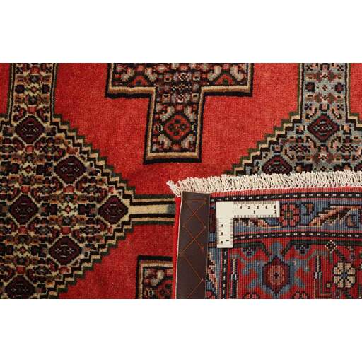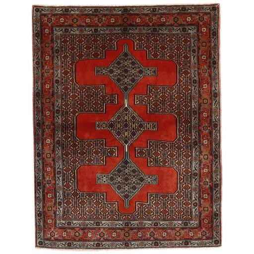 Seneh in Sanadaj is the capitol of the Kurdistan province of north-western Iran, and has about 300.000 inhabitants, most of them Kurds from the Gurani Tribe. Seneh rugs are easily recognisable by their knotting method, as well as the pattern colours and wool used. They usually have a simple weft, and the back of the rugs is often coarse and grainy, as the wool is spun tightly by hand before the knotting. Sometimes, a firm Bidjar-like knotting can be seen. Characteristically, the colours are deep blue, green, dark red, and white. Seneh wool is among the best qualities of wool in Iran: firm and durable, with a deep glow, a result of the high altitude, the sparse vegetation, and extremes in temperature. The tribal knotters in the area use the same type of wool. In the 19th century, Seneh rugs were famous for their fineness and the variation in patterns, while the modern production is less fine and not as varied. The Ghiordis knot is usually used, but you will also encounter rugs from Seneh with the Seneh knot. The typical Seneh rug has a Herati pattern field, with a series of geometrical medallions, one inside the other, each repeating the pattern with a different ground colour. Sometimes, the older, more uniform patterns are seen: Boteh, Vekili, Gol-Farang (naturalistic, European style bundles of flowers) or Gol-i-Bulbul (birds and flowers).