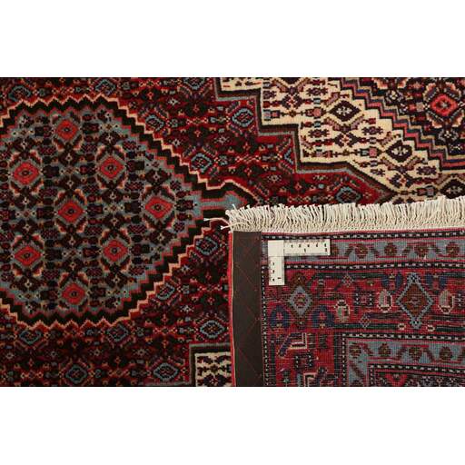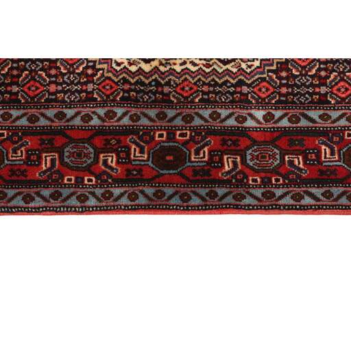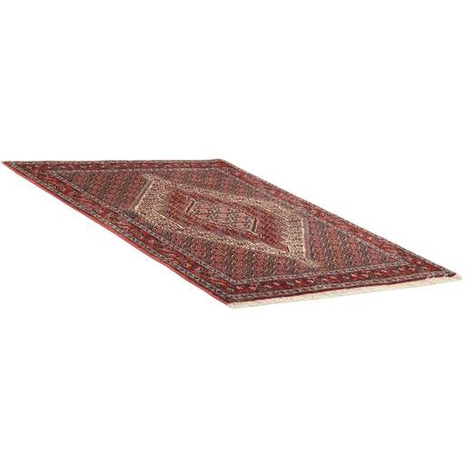 Seneh in Sanadaj is the capitol of the Kurdistan province of north-western Iran, and has about 300.000 inhabitants, most of them Kurds from the Gurani Tribe. Seneh rugs are easily recognisable by their knotting method, as well as the pattern colours and wool used. They usually have a simple weft, and the back of the rugs is often coarse and grainy, as the wool is spun tightly by hand before the knotting. Sometimes, a firm Bidjar-like knotting can be seen. Characteristically, the colours are deep blue, green, dark red, and white. Seneh wool is among the best qualities of wool in Iran: firm and durable, with a deep glow, a result of the high altitude, the sparse vegetation, and extremes in temperature. The tribal knotters in the area use the same type of wool. In the 19th century, Seneh rugs were famous for their fineness and the variation in patterns, while the modern production is less fine and not as varied. The Ghiordis knot is usually used, but you will also encounter rugs from Seneh with the Seneh knot. The typical Seneh rug has a Herati pattern field, with a series of geometrical medallions, one inside the other, each repeating the pattern with a different ground colour. Sometimes, the older, more uniform patterns are seen: Boteh, Vekili, Gol-Farang (naturalistic, European style bundles of flowers) or Gol-i-Bulbul (birds and flowers).