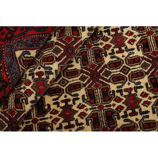Seneh in Sanadaj is the capitol of the Kurdistan province of north-western Iran, and has about 300.000 inhabitants, most of them Kurds from the Gurani Tribe. Seneh rugs are easily recognisable by their knotting method, as well as the pattern colours and wool used. They usually have a simple weft, and the back of the rugs is often coarse and grainy, as the wool is spun tightly by hand before the knotting. Sometimes, a firm Bidjar-like knotting can be seen. Characteristically, the colours are deep blue, green, dark red, and white. Seneh wool is among the best qualities of wool in Iran: firm and durable, with a deep glow, a result of the high altitude, the sparse vegetation, and extremes in temperature. The tribal knotters in the area use the same type of wool. In the 19th century, Seneh rugs were famous for their fineness and the variation in patterns, while the modern production is less fine and not as varied. The Ghiordis knot is usually used, but you will also encounter rugs from Seneh with the Seneh knot. The typical Seneh rug has a Herati pattern field, with a series of geometrical medallions, one inside the other, each repeating the pattern with a different ground colour. Sometimes, the older, more uniform patterns are seen: Boteh, Vekili, Gol-Farang (naturalistic, European style bundles of flowers) or Gol-i-Bulbul (birds and flowers).