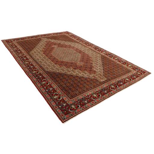 Seneh in Sanadaj is the capitol of the Kurdistan province of north-western Iran, and has about 300.000 inhabitants, most of them Kurds from the Gurani Tribe. Seneh rugs are easily recognisable by their knotting method, as well as the pattern colours and wool used. They usually have a simple weft, and the back of the rugs is often coarse and grainy, as the wool is spun tightly by hand before the knotting. Sometimes, a firm Bidjar-like knotting can be seen. Characteristically, the colours are deep blue, green, dark red, and white. Seneh wool is among the best qualities of wool in Iran: firm and durable, with a deep glow, a result of the high altitude, the sparse vegetation, and extremes in temperature. The tribal knotters in the area use the same type of wool. In the 19th century, Seneh rugs were famous for their fineness and the variation in patterns, while the modern production is less fine and not as varied. The Ghiordis knot is usually used, but you will also encounter rugs from Seneh with the Seneh knot. The typical Seneh rug has a Herati pattern field, with a series of geometrical medallions, one inside the other, each repeating the pattern with a different ground colour. Sometimes, the older, more uniform patterns are seen: Boteh, Vekili, Gol-Farang (naturalistic, European style bundles of flowers) or Gol-i-Bulbul (birds and flowers).