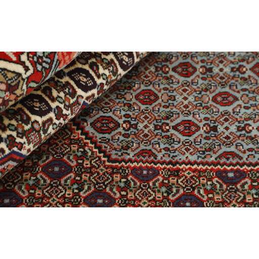 Seneh in Sanadaj is the capitol of the Kurdistan province of north-western Iran, and has about 300.000 inhabitants, most of them Kurds from the Gurani Tribe. Seneh rugs are easily recognisable by their knotting method, as well as the pattern colours and wool used. They usually have a simple weft, and the back of the rugs is often coarse and grainy, as the wool is spun tightly by hand before the knotting. Sometimes, a firm Bidjar-like knotting can be seen. Characteristically, the colours are deep blue, green, dark red, and white. Seneh wool is among the best qualities of wool in Iran: firm and durable, with a deep glow, a result of the high altitude, the sparse vegetation, and extremes in temperature. The tribal knotters in the area use the same type of wool. In the 19th century, Seneh rugs were famous for their fineness and the variation in patterns, while the modern production is less fine and not as varied. The Ghiordis knot is usually used, but you will also encounter rugs from Seneh with the Seneh knot. The typical Seneh rug has a Herati pattern field, with a series of geometrical medallions, one inside the other, each repeating the pattern with a different ground colour. Sometimes, the older, more uniform patterns are seen: Boteh, Vekili, Gol-Farang (naturalistic, European style bundles of flowers) or Gol-i-Bulbul (birds and flowers).