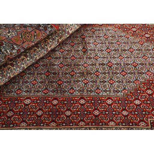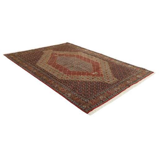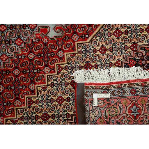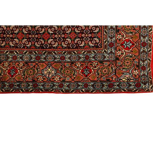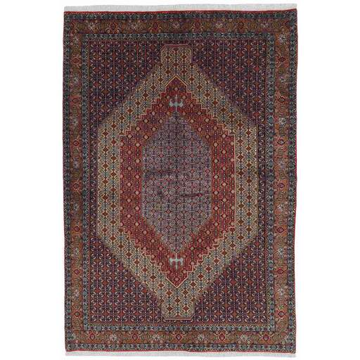 Seneh in Sanadaj is the capitol of the Kurdistan province of north-western Iran, and has about 300.000 inhabitants, most of them Kurds from the Gurani Tribe. Seneh rugs are easily recognisable by their knotting method, as well as the pattern colours and wool used. They usually have a simple weft, and the back of the rugs is often coarse and grainy, as the wool is spun tightly by hand before the knotting. Sometimes, a firm Bidjar-like knotting can be seen. Characteristically, the colours are deep blue, green, dark red, and white. Seneh wool is among the best qualities of wool in Iran: firm and durable, with a deep glow, a result of the high altitude, the sparse vegetation, and extremes in temperature. The tribal knotters in the area use the same type of wool. In the 19th century, Seneh rugs were famous for their fineness and the variation in patterns, while the modern production is less fine and not as varied. The Ghiordis knot is usually used, but you will also encounter rugs from Seneh with the Seneh knot. The typical Seneh rug has a Herati pattern field, with a series of geometrical medallions, one inside the other, each repeating the pattern with a different ground colour. Sometimes, the older, more uniform patterns are seen: Boteh, Vekili, Gol-Farang (naturalistic, European style bundles of flowers) or Gol-i-Bulbul (birds and flowers).