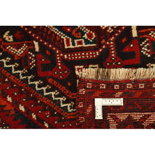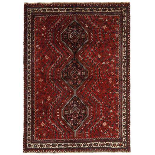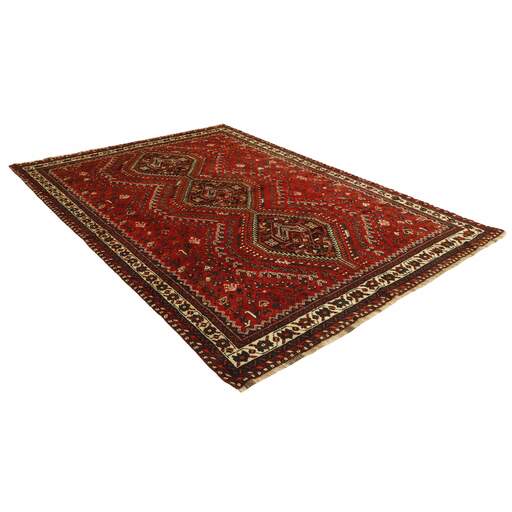 Shiraz, with a population of about one million, is the capitol of the south-eastern province of Fars, and is situated in the Zargros Mountains. Shiraz is an age-old city, which has been the capitol of Iran several times, and it is known as the city of roses and nightingales. It has a reputation of being very relaxed, with a “ we will get around to that tomorrow”-attitude. Shiraz has laid name to rugs that are knotted in the small towns and villages surrounding it, from where they are brought to the city to be sold. The local tribes like the Kashghai, whose best works are even finer and more densely knotted than those knotted in Shiraz itself, also make them. Shiraz rugs are characterised by a deep claret colour, combined with dark blue and small areas of white and green. The wool is soft, and darker wool, sometimes mixed with goat’s hair, is used for both warp and weft. The patterns are coarse and geometrical, often identical to the Kashghai patterns. Often, small, geometrical birds and animals brighten them up. Shiraz rugs are made in all sizes, although big rugs are rare.