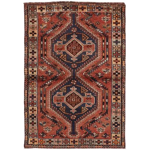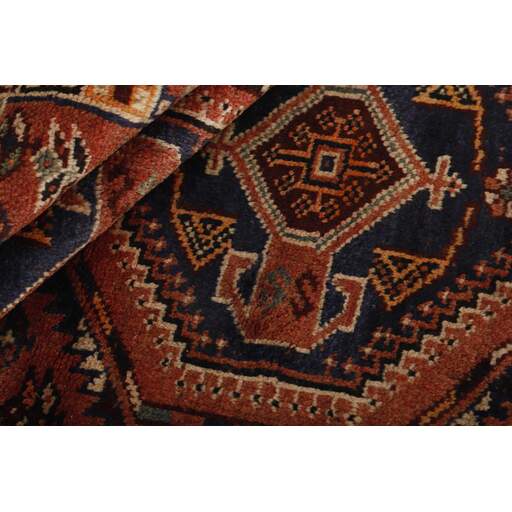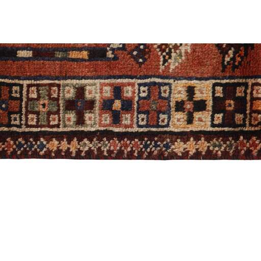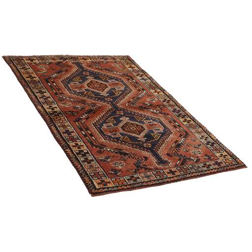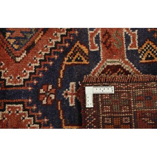 Shiraz, with a population of about one million, is the capitol of the south-eastern province of Fars, and is situated in the Zargros Mountains. Shiraz is an age-old city, which has been the capitol of Iran several times, and it is known as the city of roses and nightingales. It has a reputation of being very relaxed, with a “ we will get around to that tomorrow”-attitude. Shiraz has laid name to rugs that are knotted in the small towns and villages surrounding it, from where they are brought to the city to be sold. The local tribes like the Kashghai, whose best works are even finer and more densely knotted than those knotted in Shiraz itself, also make them. Shiraz rugs are characterised by a deep claret colour, combined with dark blue and small areas of white and green. The wool is soft, and darker wool, sometimes mixed with goat’s hair, is used for both warp and weft. The patterns are coarse and geometrical, often identical to the Kashghai patterns. Often, small, geometrical birds and animals brighten them up. Shiraz rugs are made in all sizes, although big rugs are rare.