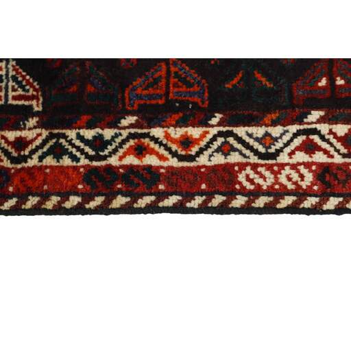 Shiraz, with a population of about one million, is the capitol of the south-eastern province of Fars, and is situated in the Zargros Mountains. Shiraz is an age-old city, which has been the capitol of Iran several times, and it is known as the city of roses and nightingales. It has a reputation of being very relaxed, with a “ we will get around to that tomorrow”-attitude. Shiraz has laid name to rugs that are knotted in the small towns and villages surrounding it, from where they are brought to the city to be sold. The local tribes like the Kashghai, whose best works are even finer and more densely knotted than those knotted in Shiraz itself, also make them. Shiraz rugs are characterised by a deep claret colour, combined with dark blue and small areas of white and green. The wool is soft, and darker wool, sometimes mixed with goat’s hair, is used for both warp and weft. The patterns are coarse and geometrical, often identical to the Kashghai patterns. Often, small, geometrical birds and animals brighten them up. Shiraz rugs are made in all sizes, although big rugs are rare.