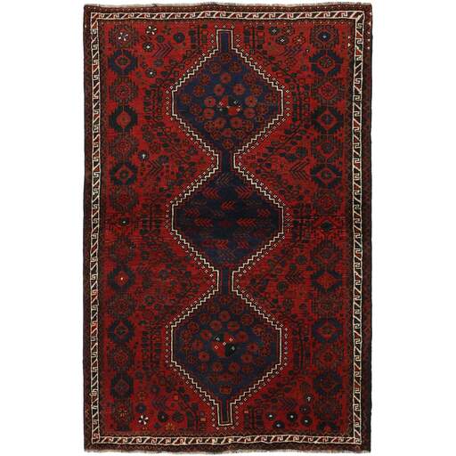 Shiraz, with a population of about one million, is the capitol of the south-eastern province of Fars, and is situated in the Zargros Mountains. Shiraz is an age-old city, which has been the capitol of Iran several times, and it is known as the city of roses and nightingales. It has a reputation of being very relaxed, with a “ we will get around to that tomorrow”-attitude. Shiraz has laid name to rugs that are knotted in the small towns and villages surrounding it, from where they are brought to the city to be sold. The local tribes like the Kashghai, whose best works are even finer and more densely knotted than those knotted in Shiraz itself, also make them. Shiraz rugs are characterised by a deep claret colour, combined with dark blue and small areas of white and green. The wool is soft, and darker wool, sometimes mixed with goat’s hair, is used for both warp and weft. The patterns are coarse and geometrical, often identical to the Kashghai patterns. Often, small, geometrical birds and animals brighten them up. Shiraz rugs are made in all sizes, although big rugs are rare.