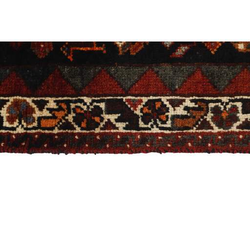 Shiraz, with a population of about one million, is the capitol of the south-eastern province of Fars, and is situated in the Zargros Mountains. Shiraz is an age-old city, which has been the capitol of Iran several times, and it is known as the city of roses and nightingales. It has a reputation of being very relaxed, with a “ we will get around to that tomorrow”-attitude. Shiraz has laid name to rugs that are knotted in the small towns and villages surrounding it, from where they are brought to the city to be sold. The local tribes like the Kashghai, whose best works are even finer and more densely knotted than those knotted in Shiraz itself, also make them. Shiraz rugs are characterised by a deep claret colour, combined with dark blue and small areas of white and green. The wool is soft, and darker wool, sometimes mixed with goat’s hair, is used for both warp and weft. The patterns are coarse and geometrical, often identical to the Kashghai patterns. Often, small, geometrical birds and animals brighten them up. Shiraz rugs are made in all sizes, although big rugs are rare.