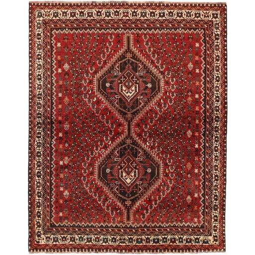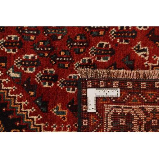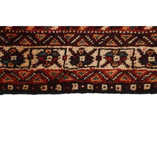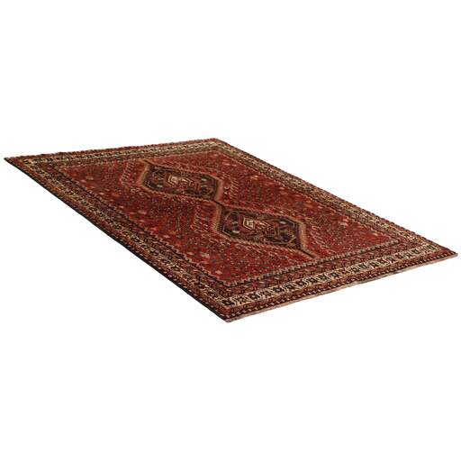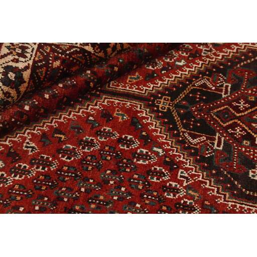 Shiraz, with a population of about one million, is the capitol of the south-eastern province of Fars, and is situated in the Zargros Mountains. Shiraz is an age-old city, which has been the capitol of Iran several times, and it is known as the city of roses and nightingales. It has a reputation of being very relaxed, with a “ we will get around to that tomorrow”-attitude. Shiraz has laid name to rugs that are knotted in the small towns and villages surrounding it, from where they are brought to the city to be sold. The local tribes like the Kashghai, whose best works are even finer and more densely knotted than those knotted in Shiraz itself, also make them. Shiraz rugs are characterised by a deep claret colour, combined with dark blue and small areas of white and green. The wool is soft, and darker wool, sometimes mixed with goat’s hair, is used for both warp and weft. The patterns are coarse and geometrical, often identical to the Kashghai patterns. Often, small, geometrical birds and animals brighten them up. Shiraz rugs are made in all sizes, although big rugs are rare.