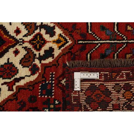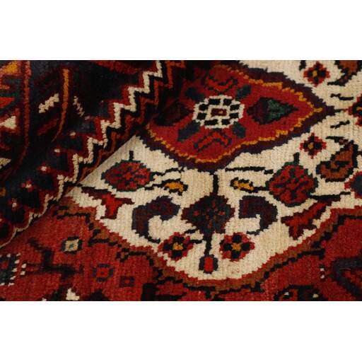 Shiraz, with a population of about one million, is the capitol of the south-eastern province of Fars, and is situated in the Zargros Mountains. Shiraz is an age-old city, which has been the capitol of Iran several times, and it is known as the city of roses and nightingales. It has a reputation of being very relaxed, with a “ we will get around to that tomorrow”-attitude. Shiraz has laid name to rugs that are knotted in the small towns and villages surrounding it, from where they are brought to the city to be sold. The local tribes like the Kashghai, whose best works are even finer and more densely knotted than those knotted in Shiraz itself, also make them. Shiraz rugs are characterised by a deep claret colour, combined with dark blue and small areas of white and green. The wool is soft, and darker wool, sometimes mixed with goat’s hair, is used for both warp and weft. The patterns are coarse and geometrical, often identical to the Kashghai patterns. Often, small, geometrical birds and animals brighten them up. Shiraz rugs are made in all sizes, although big rugs are rare.