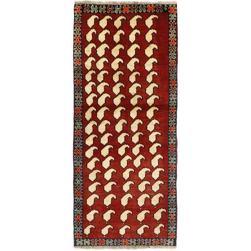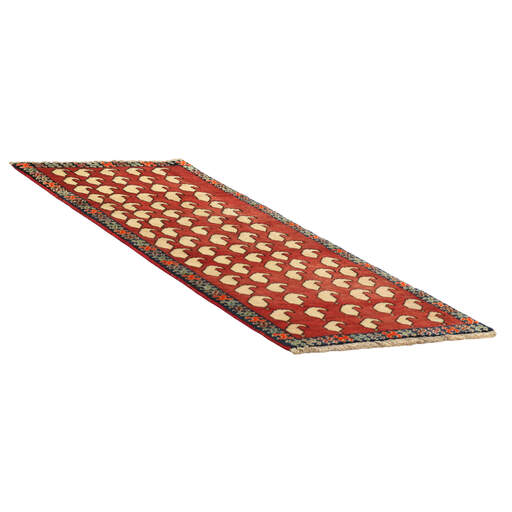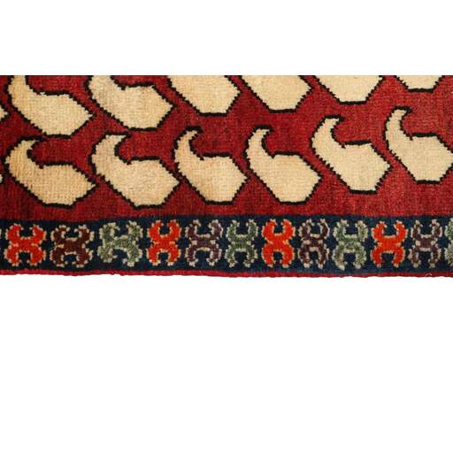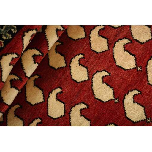Shiraz, with a population of about one million, is the capitol of the south-eastern province of Fars, and is situated in the Zargros Mountains. Shiraz is an age-old city, which has been the capitol of Iran several times, and it is known as the city of roses and nightingales. It has a reputation of being very relaxed, with a “ we will get around to that tomorrow”-attitude. Shiraz has laid name to rugs that are knotted in the small towns and villages surrounding it, from where they are brought to the city to be sold. The local tribes like the Kashghai, whose best works are even finer and more densely knotted than those knotted in Shiraz itself, also make them. Shiraz rugs are characterised by a deep claret colour, combined with dark blue and small areas of white and green. The wool is soft, and darker wool, sometimes mixed with goat’s hair, is used for both warp and weft. The patterns are coarse and geometrical, often identical to the Kashghai patterns. Often, small, geometrical birds and animals brighten them up. Shiraz rugs are made in all sizes, although big rugs are rare.