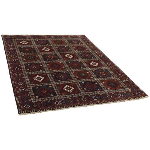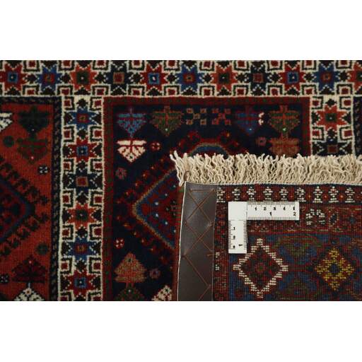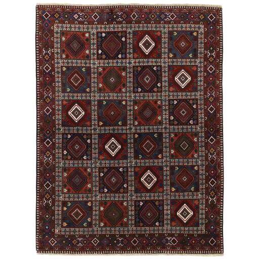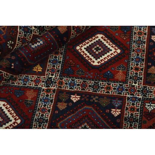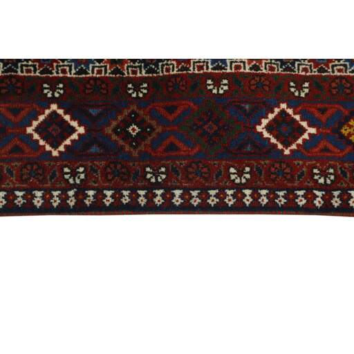 The colourful rugs from southern Iran have been named Yalameh, and are mainly knotted in and around the village of Aliabad in the Fars Province. Rugs of this origin were formerly called Shekarlu, but they were very rare. They were traditionally more colourful than other south Iranian rugs, the colours of which were limited to red and dark blue. In recent years, the supply of Shekarlu has been limited, but a new type of rug entered the market in the 60s and 70s; the Yalameh. These were just as colourful as the Shekarlu rugs, but with a stronger emphasis on blue. The knotting and the patterns are usually more uniform than with the Shekarlu rugs. They share many characteristics with the tribal rugs; they are 100% wool, and bright colours and geometrical patterns are generously used. Although the wool is characteristically soft and shining, it is machine spun, and the colours display a larger degree of variation than normal for tribal rugs, with soft nuances of red, pink, blue, green, and yellow. The motifs, however, are wholly traditional.