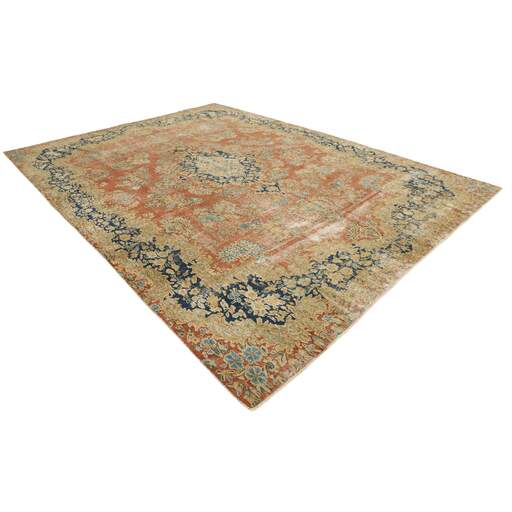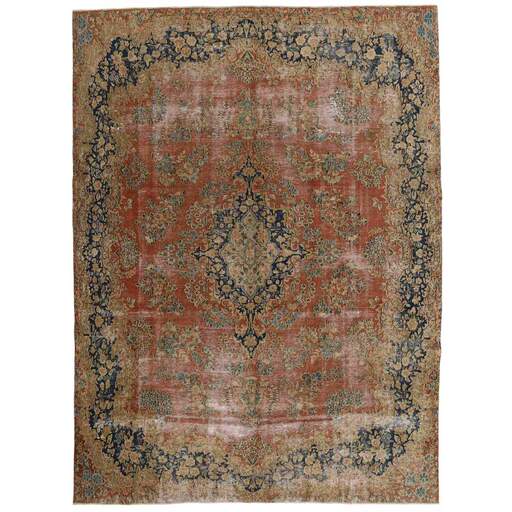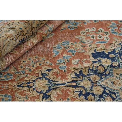 Les tapis Vintage Kerman sont des tapis anciens noués à la main d'origine persane. Cette collection Vintage Kerman se compose d'un tapis entier qui a été délavé à la pierre et recoloré dans des couleurs claires, foncées ou vives, l'ancien motif étant à peine visible. Les tapis sont de très haute qualité et sont disponibles en grandes tailles. Avec la collection Vintage Kerman, vous n'achetez pas seulement un tapis ; vous ornez votre maison d'une pièce unique d'artisanat persan ancien.