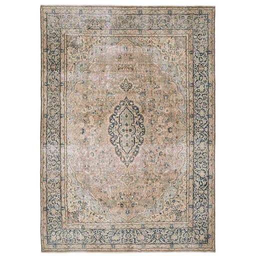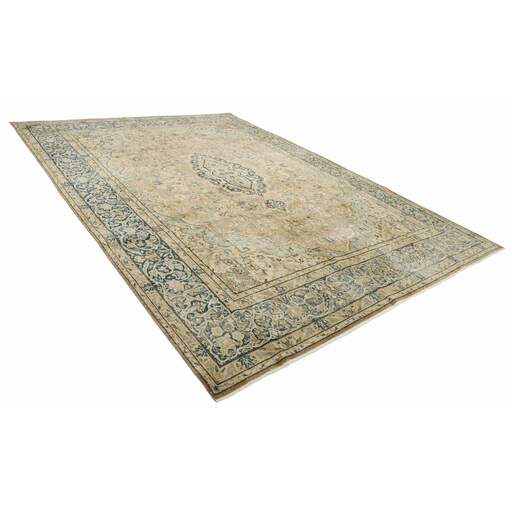 Les tapis Vintage Kerman sont des tapis anciens noués à la main d'origine persane. Cette collection Vintage Kerman se compose d'un tapis entier qui a été délavé à la pierre et recoloré dans des couleurs claires, foncées ou vives, l'ancien motif étant à peine visible. Les tapis sont de très haute qualité et sont disponibles en grandes tailles. Avec la collection Vintage Kerman, vous n'achetez pas seulement un tapis ; vous ornez votre maison d'une pièce unique d'artisanat persan ancien.
