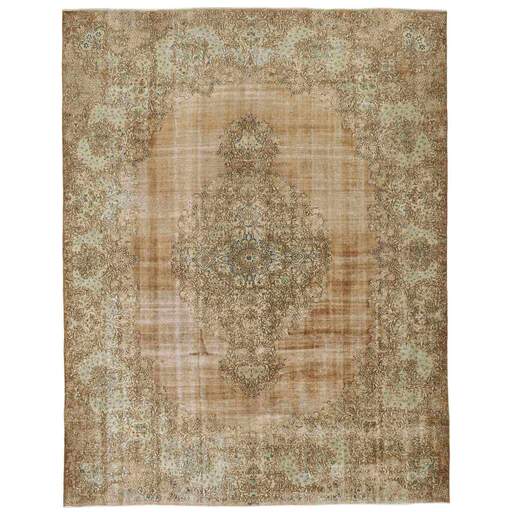 Les tapis Vintage Kerman sont des tapis anciens noués à la main d'origine persane. Cette collection Vintage Kerman se compose d'un tapis entier qui a été délavé à la pierre et recoloré dans des couleurs claires, foncées ou vives, l'ancien motif étant à peine visible. Les tapis sont de très haute qualité et sont disponibles en grandes tailles. Avec la collection Vintage Kerman, vous n'achetez pas seulement un tapis ; vous ornez votre maison d'une pièce unique d'artisanat persan ancien.