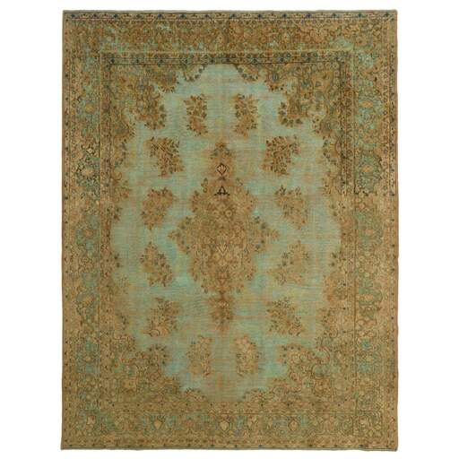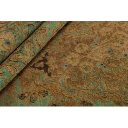 Les tapis Vintage Kerman sont des tapis anciens noués à la main d'origine persane. Cette collection Vintage Kerman se compose d'un tapis entier qui a été délavé à la pierre et recoloré dans des couleurs claires, foncées ou vives, l'ancien motif étant à peine visible. Les tapis sont de très haute qualité et sont disponibles en grandes tailles. Avec la collection Vintage Kerman, vous n'achetez pas seulement un tapis ; vous ornez votre maison d'une pièce unique d'artisanat persan ancien.