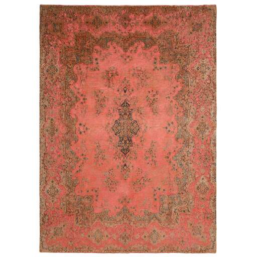 Les tapis Vintage Kerman sont des tapis anciens noués à la main d'origine persane. Cette collection Vintage Kerman se compose d'un tapis entier qui a été délavé à la pierre et recoloré dans des couleurs claires, foncées ou vives, l'ancien motif étant à peine visible. Les tapis sont de très haute qualité et sont disponibles en grandes tailles. Avec la collection Vintage Kerman, vous n'achetez pas seulement un tapis ; vous ornez votre maison d'une pièce unique d'artisanat persan ancien.