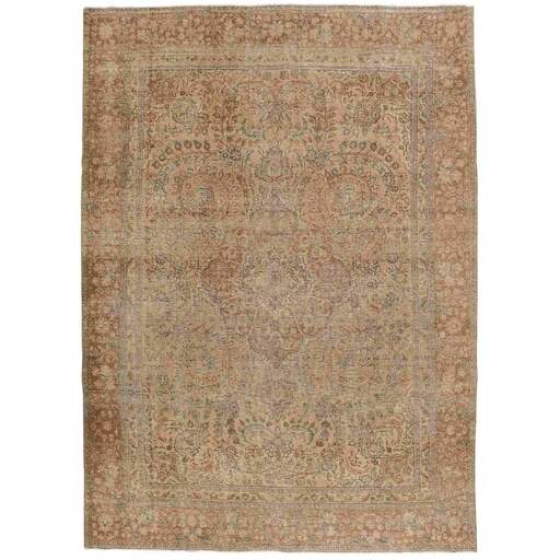 Les tapis Vintage Royal sont des tapis anciens noués à la main d'origine persane. Cette collection Vintage Royal se compose d'un tapis entier qui a été délavé à la pierre et recoloré dans des couleurs claires, foncées ou vives, l'ancien motif étant à peine visible. Les tapis sont de très haute qualité et sont disponibles en grandes tailles. Avec la collection Vintage Royal, vous n'achetez pas seulement un tapis ; vous ornez votre maison d'une pièce unique d'artisanat persan ancien.