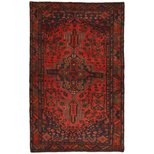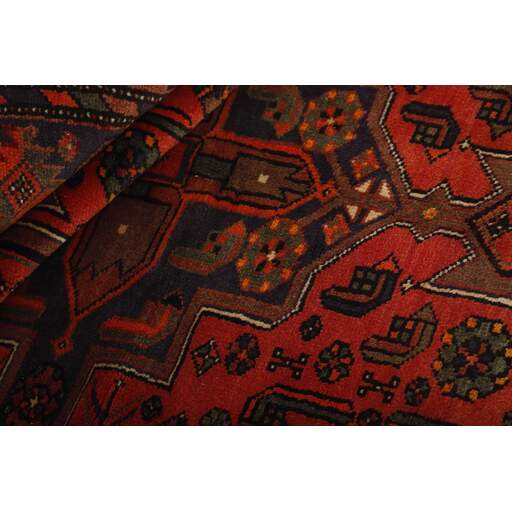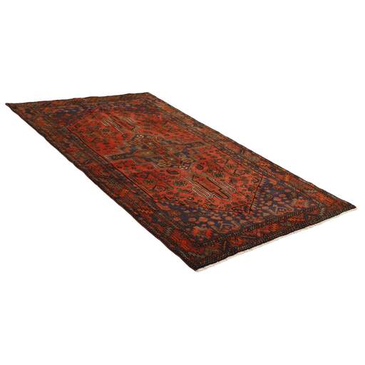 Ce tapis provient du district de Hamadan, un important centre de commerce de tapis et la zone de production de tapis la plus productive d'Iran. Hamadan est une grande ville comptant des centaines de milliers d'habitants. Comme Ekbatan, c'était la principale ville des rois achéménides. Elle abrite une population juive indigène et de nombreux monuments, dont les plus importants sont les tombeaux d'Esther et de Mordicai (au cœur des pèlerins juifs) et le tombeau d'Avicenne. Hamadan est une capitale provinciale. Deux types de tapis sont noués. L'un est le soi-disant « tapis de ville », également connu sous le nom de Shahrbaff. La production est moderne et largement contrôlée par l'État. La production villageoise, cependant, est beaucoup plus importante ; Hamadan est une ville de marché pour de nombreux villages producteurs de tapis qui ont chacun leur propre motif. Les plus importants sont Borchalu, Tuserkman, Memraban, Khamseh, Begardeh, Enjilas, Hosseinabad et Zandjan. Il existe une grande variété de motifs mais la qualité est très constante. Les couleurs sont fortes et souvent des couleurs végétales. Les motifs sont audacieux, bien qu'aléatoires, et Hosseinabad et Enjilas en particulier sont connus pour leurs motifs traversants. Les tapis ne mesurent généralement pas plus de 3 mètres sur 2.
