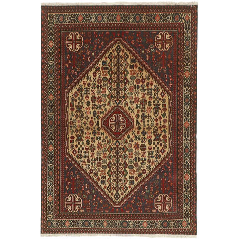 Abadeh est un village oasis d'environ 50 000 habitants, situé dans la partie nord de la province du Fars, à peu près à mi-chemin entre Shiraz et Ispahan. Il ne possède pas de monuments importants, mais son emplacement sur le versant nord des montagnes du Zagros, à proximité des routes des caravanes et des nomades, a rendu les habitants sensibles aux influences extérieures. Cela se voit dans les tapis fabriqués dans la ville. Le motif Abadeh le plus célèbre se trouve dans les tapis de la tribu Kashghai ; un motif floral de style très pur au centre du tapis, répété dans chaque coin. D'autres motifs, bien que rarement vus aujourd'hui, incluent le motif Zil-e-Sultan, composé de fleurs, de vases et de quelques oiseaux - un motif de petites bandes, qui court sur toute la longueur du tapis. Les couleurs dominantes sont le rouge, le bleu foncé et le blanc. Le velours est toujours en laine, tandis que la chaîne et la trame sont en coton.