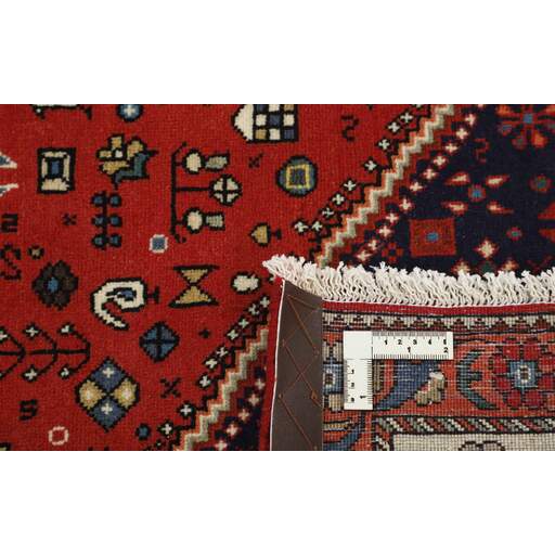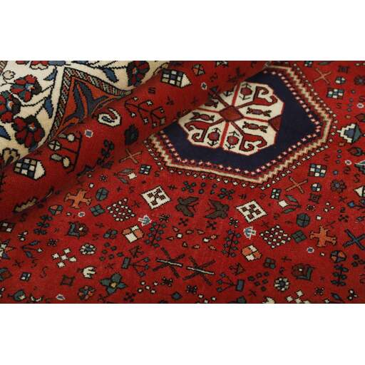 Abadeh est un village oasis d'environ 50 000 habitants, situé dans la partie nord de la province du Fars, à peu près à mi-chemin entre Shiraz et Ispahan. Il ne possède pas de monuments importants, mais son emplacement sur le versant nord des montagnes du Zagros, à proximité des routes des caravanes et des nomades, a rendu les habitants sensibles aux influences extérieures. Cela se voit dans les tapis fabriqués dans la ville. Le motif Abadeh le plus célèbre se trouve dans les tapis de la tribu Kashghai ; un motif floral de style très pur au centre du tapis, répété dans chaque coin. D'autres motifs, bien que rarement vus aujourd'hui, incluent le motif Zil-e-Sultan, composé de fleurs, de vases et de quelques oiseaux - un motif de petites bandes, qui court sur toute la longueur du tapis. Les couleurs dominantes sont le rouge, le bleu foncé et le blanc. Le velours est toujours en laine, tandis que la chaîne et la trame sont en coton.