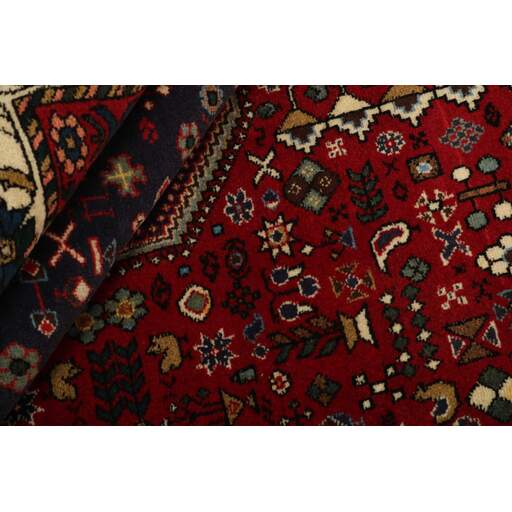 Abadeh est un village oasis d'environ 50 000 habitants, situé dans la partie nord de la province du Fars, à peu près à mi-chemin entre Shiraz et Ispahan. Il ne possède pas de monuments importants, mais son emplacement sur le versant nord des montagnes du Zagros, à proximité des routes des caravanes et des nomades, a rendu les habitants sensibles aux influences extérieures. Cela se voit dans les tapis fabriqués dans la ville. Le motif Abadeh le plus célèbre se trouve dans les tapis de la tribu Kashghai ; un motif floral de style très pur au centre du tapis, répété dans chaque coin. D'autres motifs, bien que rarement vus aujourd'hui, incluent le motif Zil-e-Sultan, composé de fleurs, de vases et de quelques oiseaux - un motif de petites bandes, qui court sur toute la longueur du tapis. Les couleurs dominantes sont le rouge, le bleu foncé et le blanc. Le velours est toujours en laine, tandis que la chaîne et la trame sont en coton.