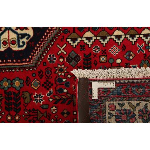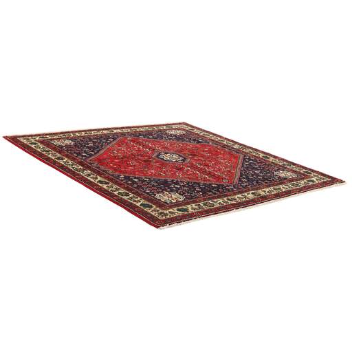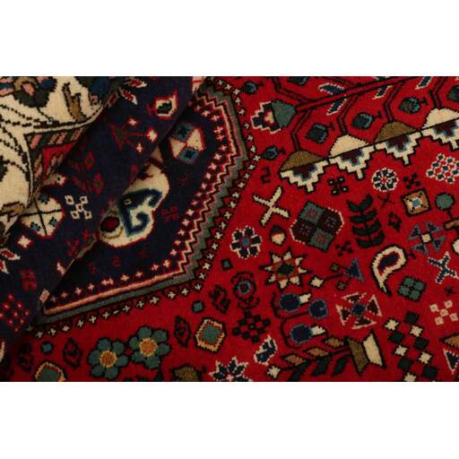 Abadeh est un village oasis d'environ 50 000 habitants, situé dans la partie nord de la province du Fars, à peu près à mi-chemin entre Shiraz et Ispahan. Il ne possède pas de monuments importants, mais son emplacement sur le versant nord des montagnes du Zagros, à proximité des routes des caravanes et des nomades, a rendu les habitants sensibles aux influences extérieures. Cela se voit dans les tapis fabriqués dans la ville. Le motif Abadeh le plus célèbre se trouve dans les tapis de la tribu Kashghai ; un motif floral de style très pur au centre du tapis, répété dans chaque coin. D'autres motifs, bien que rarement vus aujourd'hui, incluent le motif Zil-e-Sultan, composé de fleurs, de vases et de quelques oiseaux - un motif de petites bandes, qui court sur toute la longueur du tapis. Les couleurs dominantes sont le rouge, le bleu foncé et le blanc. Le velours est toujours en laine, tandis que la chaîne et la trame sont en coton.