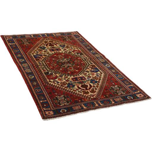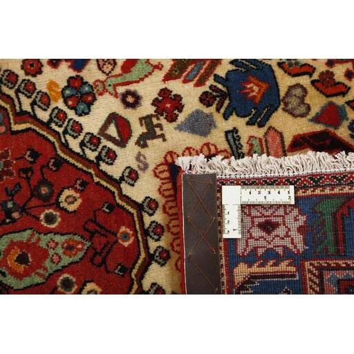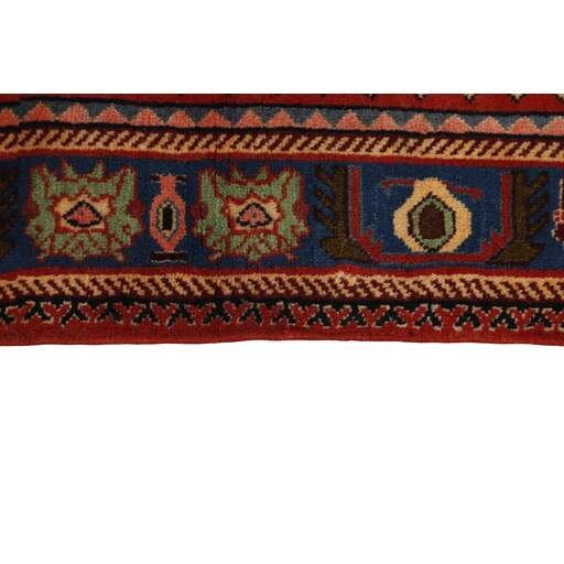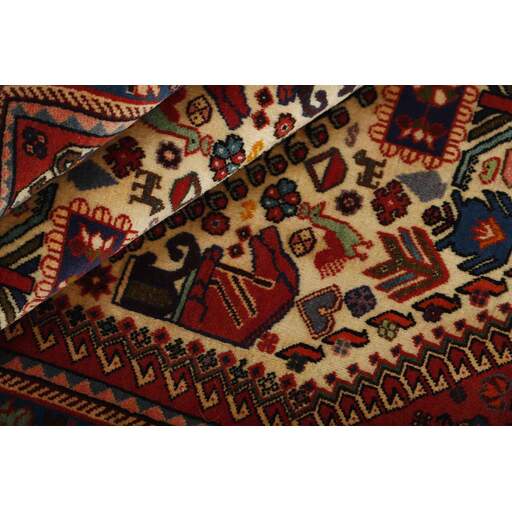 Abadeh est un village oasis d'environ 50 000 habitants, situé dans la partie nord de la province du Fars, à peu près à mi-chemin entre Shiraz et Ispahan. Il ne possède pas de monuments importants, mais son emplacement sur le versant nord des montagnes du Zagros, à proximité des routes des caravanes et des nomades, a rendu les habitants sensibles aux influences extérieures. Cela se voit dans les tapis fabriqués dans la ville. Le motif Abadeh le plus célèbre se trouve dans les tapis de la tribu Kashghai ; un motif floral de style très pur au centre du tapis, répété dans chaque coin. D'autres motifs, bien que rarement vus aujourd'hui, incluent le motif Zil-e-Sultan, composé de fleurs, de vases et de quelques oiseaux - un motif de petites bandes, qui court sur toute la longueur du tapis. Les couleurs dominantes sont le rouge, le bleu foncé et le blanc. Le velours est toujours en laine, tandis que la chaîne et la trame sont en coton.