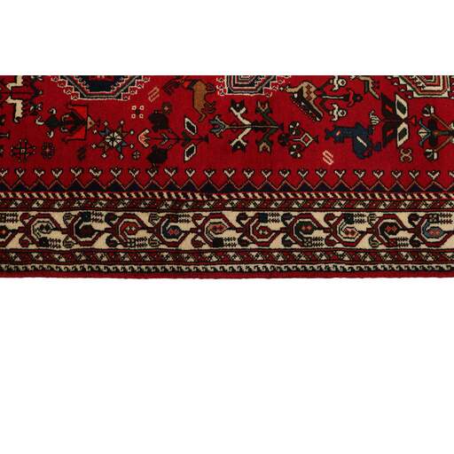 Abadeh est un village oasis d'environ 50 000 habitants, situé dans la partie nord de la province du Fars, à peu près à mi-chemin entre Shiraz et Ispahan. Il ne possède pas de monuments importants, mais son emplacement sur le versant nord des montagnes du Zagros, à proximité des routes des caravanes et des nomades, a rendu les habitants sensibles aux influences extérieures. Cela se voit dans les tapis fabriqués dans la ville. Le motif Abadeh le plus célèbre se trouve dans les tapis de la tribu Kashghai ; un motif floral de style très pur au centre du tapis, répété dans chaque coin. D'autres motifs, bien que rarement vus aujourd'hui, incluent le motif Zil-e-Sultan, composé de fleurs, de vases et de quelques oiseaux - un motif de petites bandes, qui court sur toute la longueur du tapis. Les couleurs dominantes sont le rouge, le bleu foncé et le blanc. Le velours est toujours en laine, tandis que la chaîne et la trame sont en coton.