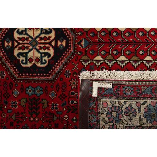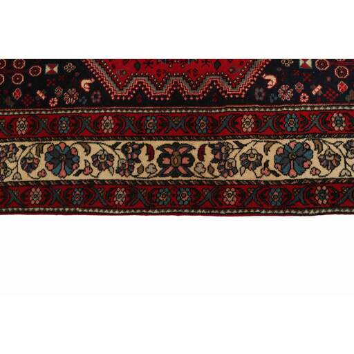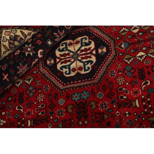 Abadeh est un village oasis d'environ 50 000 habitants, situé dans la partie nord de la province du Fars, à peu près à mi-chemin entre Shiraz et Ispahan. Il ne possède pas de monuments importants, mais son emplacement sur le versant nord des montagnes du Zagros, à proximité des routes des caravanes et des nomades, a rendu les habitants sensibles aux influences extérieures. Cela se voit dans les tapis fabriqués dans la ville. Le motif Abadeh le plus célèbre se trouve dans les tapis de la tribu Kashghai ; un motif floral de style très pur au centre du tapis, répété dans chaque coin. D'autres motifs, bien que rarement vus aujourd'hui, incluent le motif Zil-e-Sultan, composé de fleurs, de vases et de quelques oiseaux - un motif de petites bandes, qui court sur toute la longueur du tapis. Les couleurs dominantes sont le rouge, le bleu foncé et le blanc. Le velours est toujours en laine, tandis que la chaîne et la trame sont en coton.