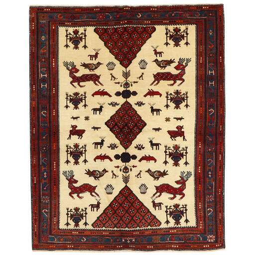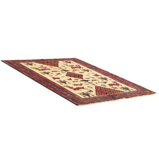 Les Afshar sont l'une des tribus nomades les plus importantes d'Iran. Le membre le plus célèbre de la tribu était Nadir Shah, un roi du 18e siècle qui a combattu une rébellion afghane pour vaincre Delhi et restituer le trône du Paon et d'autres trésors à l'Iran. De nos jours, les Afshar restent discrets et sont principalement célèbres pour leurs tapis. Ceux-ci sont classés selon les noms des villes où ils sont vendus. Les plus importants d'entre eux sont Shahr-e-Babak et Sirjan, qui sont situés à l'ouest/sud-ouest de Kerman, dans le sud-est de l'Iran. Sirjan était une ville très importante au 10e siècle, et on peut encore voir quelques ruines aujourd'hui. Tous les tapis Afshar ont un velours de laine, tandis que la chaîne et la trame sont généralement en coton. Les tapis Sirjan ont une densité moyenne et sont rigides et solidement noués. Les motifs sont simples ; un motif couvrant tout le tapis, ou de grands médaillons hexagonaux et trois médaillons en forme de losange dans un axe central. Le bleu profond et le rouge sont dominants. La plupart des tapis Sirjan ont la taille d'un grand Dozar. Les tapis Shahr-e-Babak sont plus fins et plus souples. Les motifs sont géométriques, très inventifs et souvent décorés d'animaux ou d'oiseaux. Une large gamme de couleurs est utilisée.