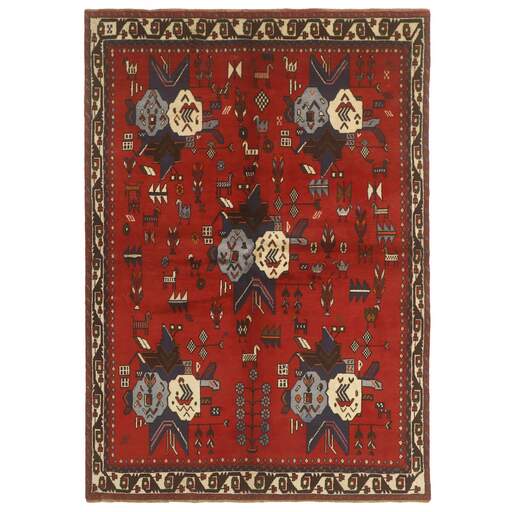 Les Afshar sont l'une des tribus nomades les plus importantes d'Iran. Le membre le plus célèbre de la tribu était Nadir Shah, un roi du 18e siècle qui a combattu une rébellion afghane pour vaincre Delhi et restituer le trône du Paon et d'autres trésors à l'Iran. De nos jours, les Afshar restent discrets et sont principalement célèbres pour leurs tapis. Ceux-ci sont classés selon les noms des villes où ils sont vendus. Les plus importants d'entre eux sont Shahr-e-Babak et Sirjan, qui sont situés à l'ouest/sud-ouest de Kerman, dans le sud-est de l'Iran. Sirjan était une ville très importante au 10e siècle, et on peut encore voir quelques ruines aujourd'hui. Tous les tapis Afshar ont un velours de laine, tandis que la chaîne et la trame sont généralement en coton. Les tapis Sirjan ont une densité moyenne et sont rigides et solidement noués. Les motifs sont simples ; un motif couvrant tout le tapis, ou de grands médaillons hexagonaux et trois médaillons en forme de losange dans un axe central. Le bleu profond et le rouge sont dominants. La plupart des tapis Sirjan ont la taille d'un grand Dozar. Les tapis Shahr-e-Babak sont plus fins et plus souples. Les motifs sont géométriques, très inventifs et souvent décorés d'animaux ou d'oiseaux. Une large gamme de couleurs est utilisée.