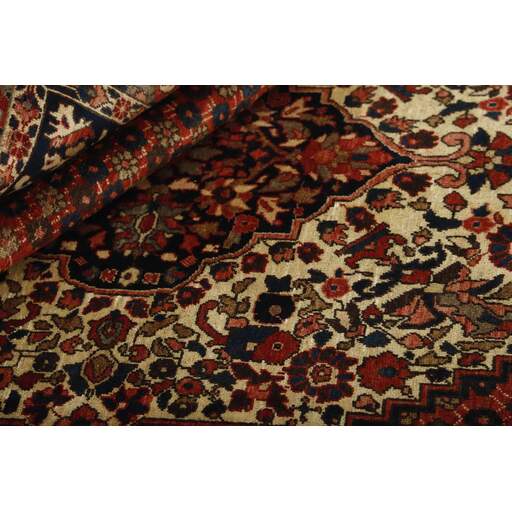 Bakhtiyar est le nom de deux types de tapis : l'un est produit par les nomades des montagnes du Zagros, à l'ouest d'Ispahan, dans le centre de l'Iran, et l'autre, plus important, est produit par les résidents permanents des villages de la région. Seuls quelques tapis nomades Bakhtiyar arrivent sur le marché - les plus courants sont probablement les tapis de sac qui combinent le travail du velours et du kelim. Les tapis des villages sont plus courants et sont produits dans de nombreux villages de montagne, dont les habitants sont d'origine turque, persane ou arménienne. Ils sont le plus souvent vendus dans les bazars d'Ispahan. Les motifs les plus courants sont les médaillons et les soi-disant motifs de jardin, qui sont divisés en carrés de différents motifs floraux. Le motif a des racines anciennes et est souvent rustique, car de grands blocs de couleur aux contours prononcés sont utilisés. La plupart des couleurs sont fabriquées à partir de pigments végétaux produits localement, ce qui donne un effet harmonieux aux tapis.