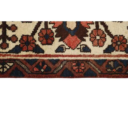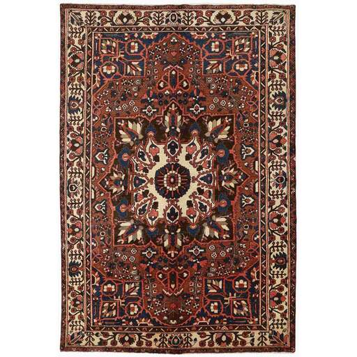 Bakhtiyar est le nom de deux types de tapis : l'un est produit par les nomades des montagnes du Zagros, à l'ouest d'Ispahan, dans le centre de l'Iran, et l'autre, plus important, est produit par les résidents permanents des villages de la région. Seuls quelques tapis nomades Bakhtiyar arrivent sur le marché - les plus courants sont probablement les tapis de sac qui combinent le travail du velours et du kelim. Les tapis des villages sont plus courants et sont produits dans de nombreux villages de montagne, dont les habitants sont d'origine turque, persane ou arménienne. Ils sont le plus souvent vendus dans les bazars d'Ispahan. Les motifs les plus courants sont les médaillons et les soi-disant motifs de jardin, qui sont divisés en carrés de différents motifs floraux. Le motif a des racines anciennes et est souvent rustique, car de grands blocs de couleur aux contours prononcés sont utilisés. La plupart des couleurs sont fabriquées à partir de pigments végétaux produits localement, ce qui donne un effet harmonieux aux tapis.
