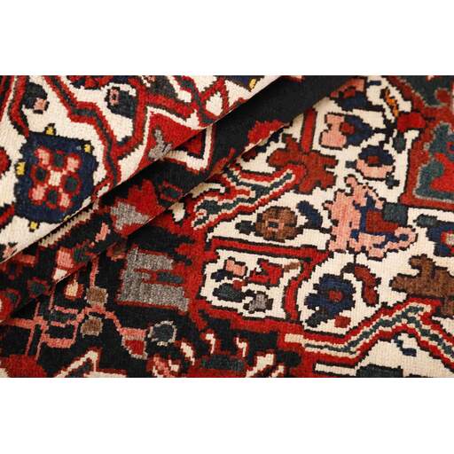 Bakhtiyar est le nom de deux types de tapis : l'un est produit par les nomades des montagnes du Zagros, à l'ouest d'Ispahan, dans le centre de l'Iran, et l'autre, plus important, est produit par les résidents permanents des villages de la région. Seuls quelques tapis nomades Bakhtiyar arrivent sur le marché - les plus courants sont probablement les tapis de sac qui combinent le travail du velours et du kelim. Les tapis des villages sont plus courants et sont produits dans de nombreux villages de montagne, dont les habitants sont d'origine turque, persane ou arménienne. Ils sont le plus souvent vendus dans les bazars d'Ispahan. Les motifs les plus courants sont les médaillons et les soi-disant motifs de jardin, qui sont divisés en carrés de différents motifs floraux. Le motif a des racines anciennes et est souvent rustique, car de grands blocs de couleur aux contours prononcés sont utilisés. La plupart des couleurs sont fabriquées à partir de pigments végétaux produits localement, ce qui donne un effet harmonieux aux tapis.