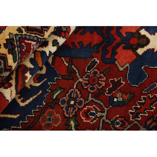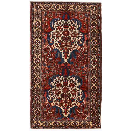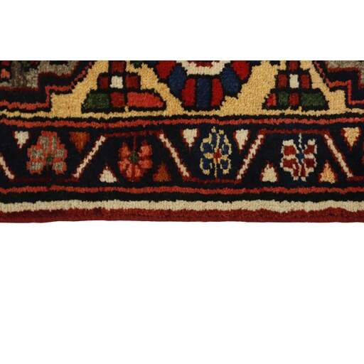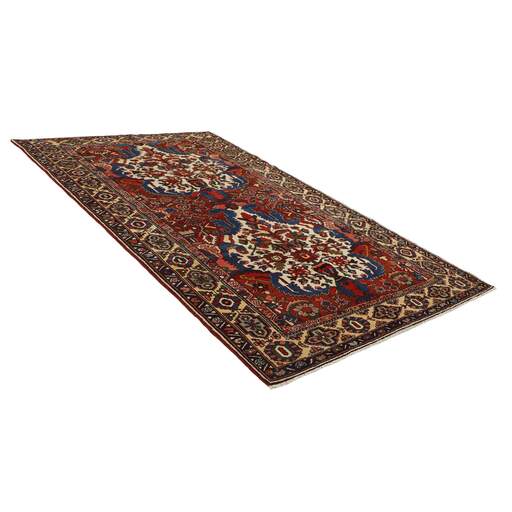 Bakhtiyar est le nom de deux types de tapis : l'un est produit par les nomades des montagnes du Zagros, à l'ouest d'Ispahan, dans le centre de l'Iran, et l'autre, plus important, est produit par les résidents permanents des villages de la région. Seuls quelques tapis nomades Bakhtiyar arrivent sur le marché - les plus courants sont probablement les tapis de sac qui combinent le travail du velours et du kelim. Les tapis des villages sont plus courants et sont produits dans de nombreux villages de montagne, dont les habitants sont d'origine turque, persane ou arménienne. Ils sont le plus souvent vendus dans les bazars d'Ispahan. Les motifs les plus courants sont les médaillons et les soi-disant motifs de jardin, qui sont divisés en carrés de différents motifs floraux. Le motif a des racines anciennes et est souvent rustique, car de grands blocs de couleur aux contours prononcés sont utilisés. La plupart des couleurs sont fabriquées à partir de pigments végétaux produits localement, ce qui donne un effet harmonieux aux tapis.