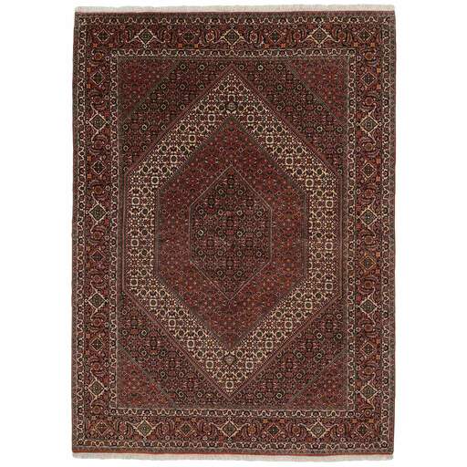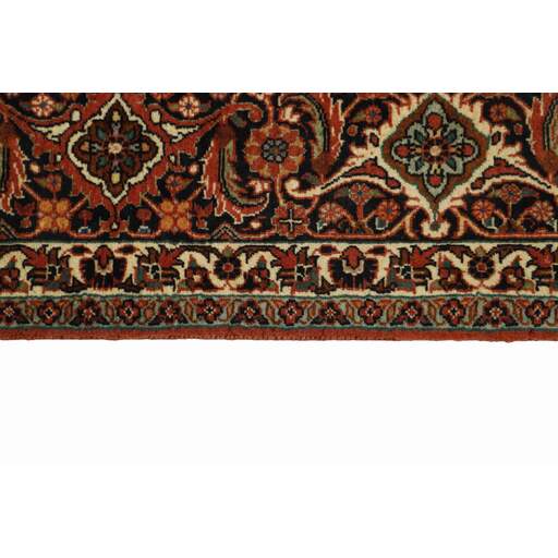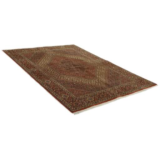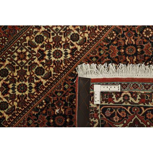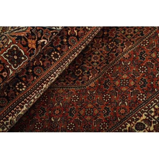Bidjar est une ville d'environ 50 000 habitants située dans la province du Kurdistan, au nord-ouest du pays. Elle se trouve dans une vallée fertile entourée de montagnes arides et ne possède aucun monument important. La ville sert principalement de centre commercial pour les villages environnants. Son histoire récente est dramatique, car la ville a été occupée d'abord par les Russes, puis par les Turcs, pendant la Première Guerre mondiale, ce qui a entraîné une famine qui a considérablement réduit la population. Ces événements se reflètent dans la production de tapis de la ville. Avant la Première Guerre mondiale, les tapis étaient noués grossièrement mais fermement, avec une chaîne et une trame en laine. Plus tard, ils sont devenus plus fins et avaient des bases en coton. Les motifs Bidjar sont souvent Herati, mais parfois on peut voir un motif Mahi. Les couleurs sont généralement des rouges clairs avec une bordure légère. Les tapis Bidjar sont si fortement noués que vous risquez de casser les nœuds si vous les pliez ensemble avec le poil tourné vers l'intérieur. Lorsque vous pliez les tapis Bidjar, c'est donc toujours avec le poil tourné vers l'extérieur. On sent clairement que la laine utilisée dans un tapis Bidjar est bien plus importante que dans la plupart des autres tapis. Ils sont beaucoup plus lourds et ne sont pas aussi faciles à déplacer lorsqu'ils sont posés sur le sol.