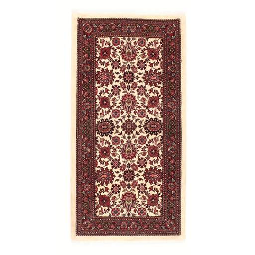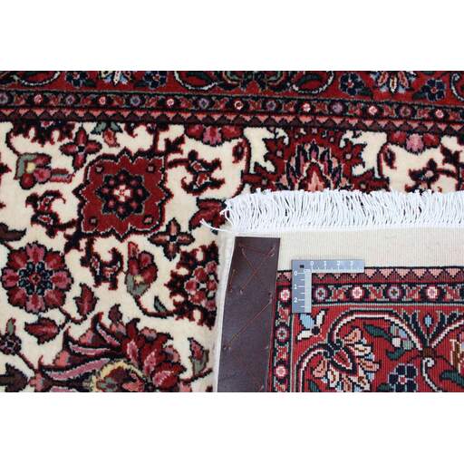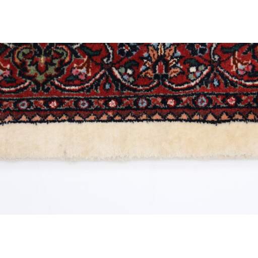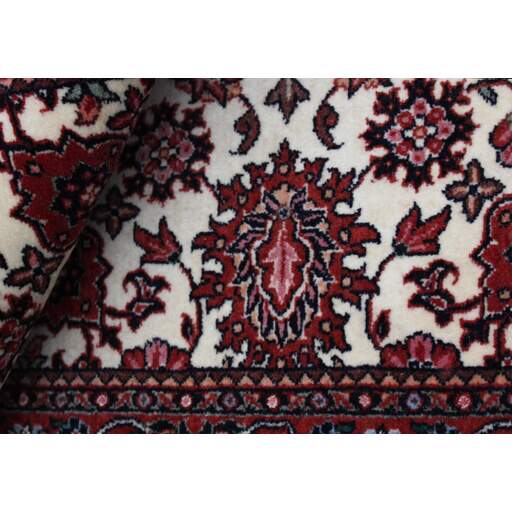 Bidjar est une ville d'environ 50 000 habitants située dans la province du Kurdistan, au nord-ouest du pays. Elle se trouve dans une vallée fertile entourée de montagnes arides et ne possède aucun monument important. La ville sert principalement de centre commercial pour les villages environnants. Son histoire récente est dramatique, car la ville a été occupée d'abord par les Russes, puis par les Turcs, pendant la Première Guerre mondiale, ce qui a entraîné une famine qui a considérablement réduit la population. Ces événements se reflètent dans la production de tapis de la ville. Avant la Première Guerre mondiale, les tapis étaient noués grossièrement mais fermement, avec une chaîne et une trame en laine. Plus tard, ils sont devenus plus fins et avaient des bases en coton. Les motifs Bidjar sont souvent Herati, mais parfois on peut voir un motif Mahi. Les couleurs sont généralement des rouges clairs avec une bordure légère. Les tapis Bidjar sont si fortement noués que vous risquez de casser les nœuds si vous les pliez ensemble avec le poil tourné vers l'intérieur. Lorsque vous pliez les tapis Bidjar, c'est donc toujours avec le poil tourné vers l'extérieur. On sent clairement que la laine utilisée dans un tapis Bidjar est bien plus importante que dans la plupart des autres tapis. Ils sont beaucoup plus lourds et ne sont pas aussi faciles à déplacer lorsqu'ils sont posés sur le sol.