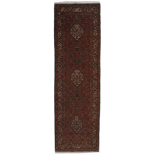 Bidjar est une ville d'environ 50 000 habitants située dans la province du Kurdistan, au nord-ouest du pays. Elle se trouve dans une vallée fertile entourée de montagnes arides et ne possède aucun monument important. La ville sert principalement de centre commercial pour les villages environnants. Son histoire récente est dramatique, car la ville a été occupée d'abord par les Russes, puis par les Turcs, pendant la Première Guerre mondiale, ce qui a entraîné une famine qui a considérablement réduit la population. Ces événements se reflètent dans la production de tapis de la ville. Avant la Première Guerre mondiale, les tapis étaient noués grossièrement mais fermement, avec une chaîne et une trame en laine. Plus tard, ils sont devenus plus fins et avaient des bases en coton. Les motifs Bidjar sont souvent Herati, mais parfois on peut voir un motif Mahi. Les couleurs sont généralement des rouges clairs avec une bordure légère. Les tapis Bidjar sont si fortement noués que vous risquez de casser les nœuds si vous les pliez ensemble avec le poil tourné vers l'intérieur. Lorsque vous pliez les tapis Bidjar, c'est donc toujours avec le poil tourné vers l'extérieur. On sent clairement que la laine utilisée dans un tapis Bidjar est bien plus importante que dans la plupart des autres tapis. Ils sont beaucoup plus lourds et ne sont pas aussi faciles à déplacer lorsqu'ils sont posés sur le sol.
