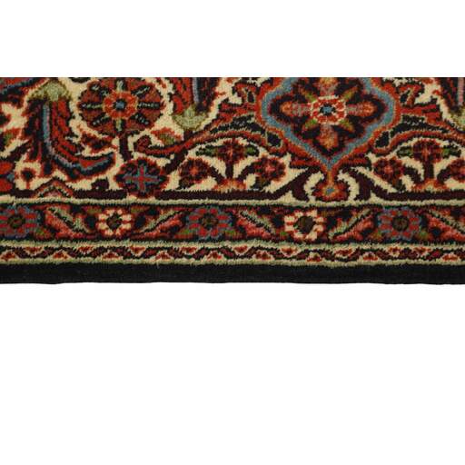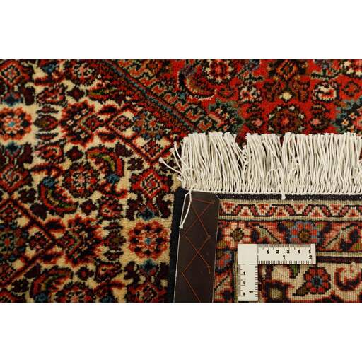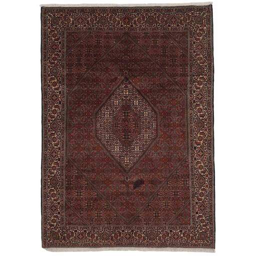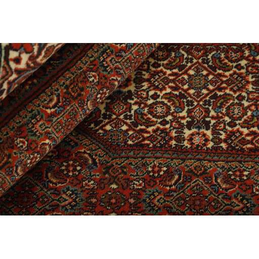 Bidjar est une ville d'environ 50 000 habitants située dans la province du Kurdistan, au nord-ouest du pays. Elle se trouve dans une vallée fertile entourée de montagnes arides et ne possède aucun monument important. La ville sert principalement de centre commercial pour les villages environnants. Son histoire récente est dramatique, car la ville a été occupée d'abord par les Russes, puis par les Turcs, pendant la Première Guerre mondiale, ce qui a entraîné une famine qui a considérablement réduit la population. Ces événements se reflètent dans la production de tapis de la ville. Avant la Première Guerre mondiale, les tapis étaient noués grossièrement mais fermement, avec une chaîne et une trame en laine. Plus tard, ils sont devenus plus fins et avaient des bases en coton. Les motifs Bidjar sont souvent Herati, mais parfois on peut voir un motif Mahi. Les couleurs sont généralement des rouges clairs avec une bordure légère. Les tapis Bidjar sont si fortement noués que vous risquez de casser les nœuds si vous les pliez ensemble avec le poil tourné vers l'intérieur. Lorsque vous pliez les tapis Bidjar, c'est donc toujours avec le poil tourné vers l'extérieur. On sent clairement que la laine utilisée dans un tapis Bidjar est bien plus importante que dans la plupart des autres tapis. Ils sont beaucoup plus lourds et ne sont pas aussi faciles à déplacer lorsqu'ils sont posés sur le sol.