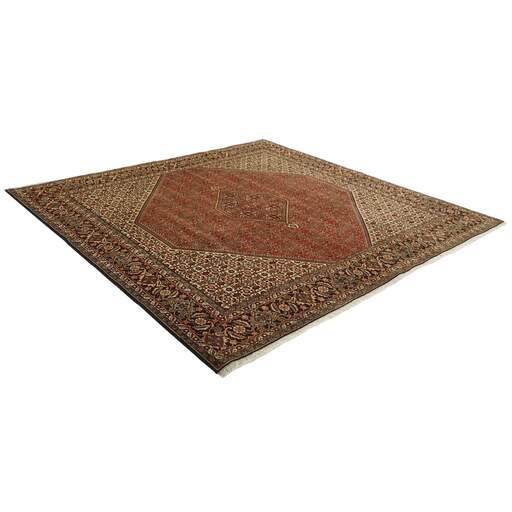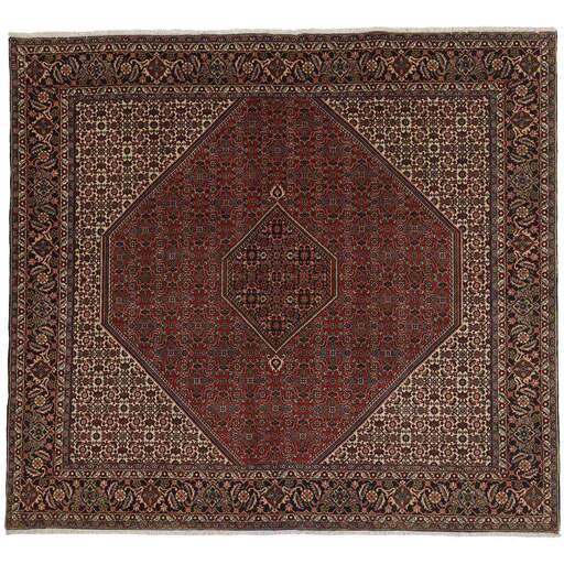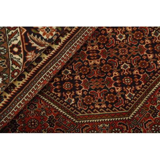 Bidjar est une ville d'environ 50 000 habitants située dans la province du Kurdistan, au nord-ouest du pays. Elle se trouve dans une vallée fertile entourée de montagnes arides et ne possède aucun monument important. La ville sert principalement de centre commercial pour les villages environnants. Son histoire récente est dramatique, car la ville a été occupée d'abord par les Russes, puis par les Turcs, pendant la Première Guerre mondiale, ce qui a entraîné une famine qui a considérablement réduit la population. Ces événements se reflètent dans la production de tapis de la ville. Avant la Première Guerre mondiale, les tapis étaient noués grossièrement mais fermement, avec une chaîne et une trame en laine. Plus tard, ils sont devenus plus fins et avaient des bases en coton. Les motifs Bidjar sont souvent Herati, mais parfois on peut voir un motif Mahi. Les couleurs sont généralement des rouges clairs avec une bordure légère. Les tapis Bidjar sont si fortement noués que vous risquez de casser les nœuds si vous les pliez ensemble avec le poil tourné vers l'intérieur. Lorsque vous pliez les tapis Bidjar, c'est donc toujours avec le poil tourné vers l'extérieur. On sent clairement que la laine utilisée dans un tapis Bidjar est bien plus importante que dans la plupart des autres tapis. Ils sont beaucoup plus lourds et ne sont pas aussi faciles à déplacer lorsqu'ils sont posés sur le sol.
