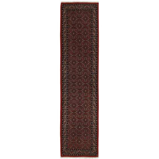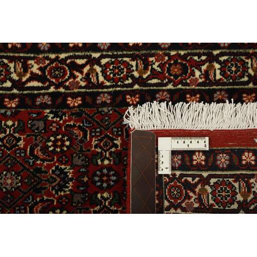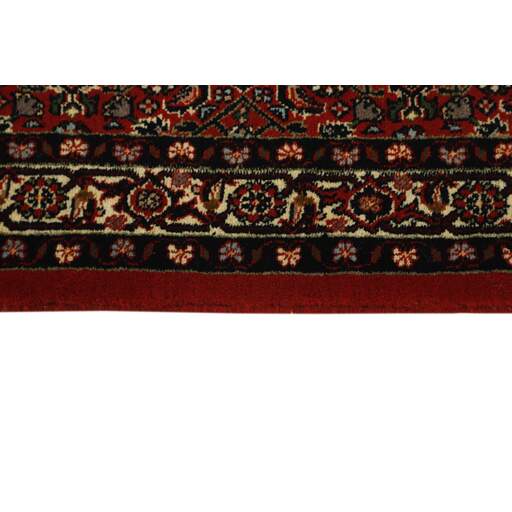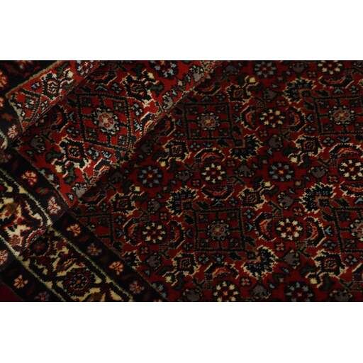 Bidjar est une ville d'environ 50 000 habitants située dans la province du Kurdistan, au nord-ouest du pays. Elle se trouve dans une vallée fertile entourée de montagnes arides et ne possède aucun monument important. La ville sert principalement de centre commercial pour les villages environnants. Son histoire récente est dramatique, car la ville a été occupée d'abord par les Russes, puis par les Turcs, pendant la Première Guerre mondiale, ce qui a entraîné une famine qui a considérablement réduit la population. Ces événements se reflètent dans la production de tapis de la ville. Avant la Première Guerre mondiale, les tapis étaient noués grossièrement mais fermement, avec une chaîne et une trame en laine. Plus tard, ils sont devenus plus fins et avaient des bases en coton. Les motifs Bidjar sont souvent Herati, mais parfois on peut voir un motif Mahi. Les couleurs sont généralement des rouges clairs avec une bordure légère. Les tapis Bidjar sont si fortement noués que vous risquez de casser les nœuds si vous les pliez ensemble avec le poil tourné vers l'intérieur. Lorsque vous pliez les tapis Bidjar, c'est donc toujours avec le poil tourné vers l'extérieur. On sent clairement que la laine utilisée dans un tapis Bidjar est bien plus importante que dans la plupart des autres tapis. Ils sont beaucoup plus lourds et ne sont pas aussi faciles à déplacer lorsqu'ils sont posés sur le sol.