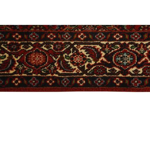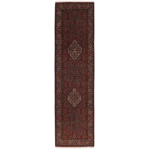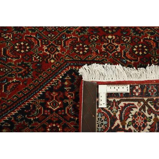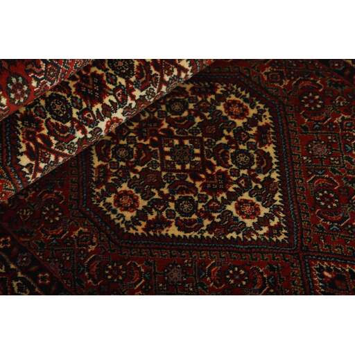 Bidjar est une ville d'environ 50 000 habitants située dans la province du Kurdistan, au nord-ouest du pays. Elle se trouve dans une vallée fertile entourée de montagnes arides et ne possède aucun monument important. La ville sert principalement de centre commercial pour les villages environnants. Son histoire récente est dramatique, car la ville a été occupée d'abord par les Russes, puis par les Turcs, pendant la Première Guerre mondiale, ce qui a entraîné une famine qui a considérablement réduit la population. Ces événements se reflètent dans la production de tapis de la ville. Avant la Première Guerre mondiale, les tapis étaient noués grossièrement mais fermement, avec une chaîne et une trame en laine. Plus tard, ils sont devenus plus fins et avaient des bases en coton. Les motifs Bidjar sont souvent Herati, mais parfois on peut voir un motif Mahi. Les couleurs sont généralement des rouges clairs avec une bordure légère. Les tapis Bidjar sont si fortement noués que vous risquez de casser les nœuds si vous les pliez ensemble avec le poil tourné vers l'intérieur. Lorsque vous pliez les tapis Bidjar, c'est donc toujours avec le poil tourné vers l'extérieur. On sent clairement que la laine utilisée dans un tapis Bidjar est bien plus importante que dans la plupart des autres tapis. Ils sont beaucoup plus lourds et ne sont pas aussi faciles à déplacer lorsqu'ils sont posés sur le sol.