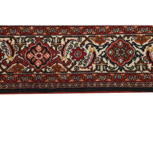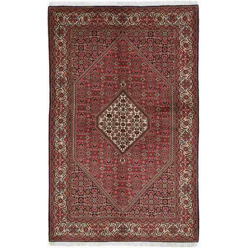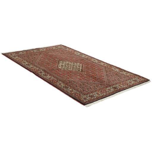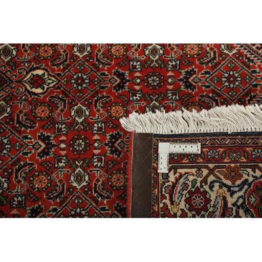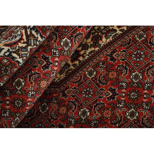 Bidjar est une ville d'environ 50 000 habitants située dans la province du Kurdistan, au nord-ouest du pays. Elle se trouve dans une vallée fertile entourée de montagnes arides et ne possède aucun monument important. La ville sert principalement de centre commercial pour les villages environnants. Son histoire récente est dramatique, car la ville a été occupée d'abord par les Russes, puis par les Turcs, pendant la Première Guerre mondiale, ce qui a entraîné une famine qui a considérablement réduit la population. Ces événements se reflètent dans la production de tapis de la ville. Avant la Première Guerre mondiale, les tapis étaient noués grossièrement mais fermement, avec une chaîne et une trame en laine. Plus tard, ils sont devenus plus fins et avaient des bases en coton. Les motifs Bidjar sont souvent Herati, mais parfois on peut voir un motif Mahi. Les couleurs sont généralement des rouges clairs avec une bordure légère. Les tapis Bidjar sont si fortement noués que vous risquez de casser les nœuds si vous les pliez ensemble avec le poil tourné vers l'intérieur. Lorsque vous pliez les tapis Bidjar, c'est donc toujours avec le poil tourné vers l'extérieur. On sent clairement que la laine utilisée dans un tapis Bidjar est bien plus importante que dans la plupart des autres tapis. Ils sont beaucoup plus lourds et ne sont pas aussi faciles à déplacer lorsqu'ils sont posés sur le sol.