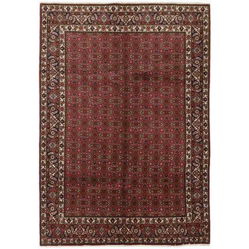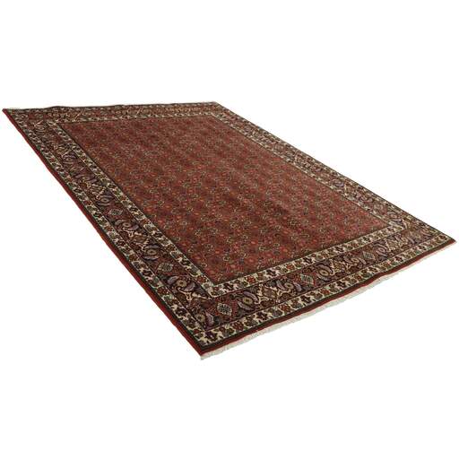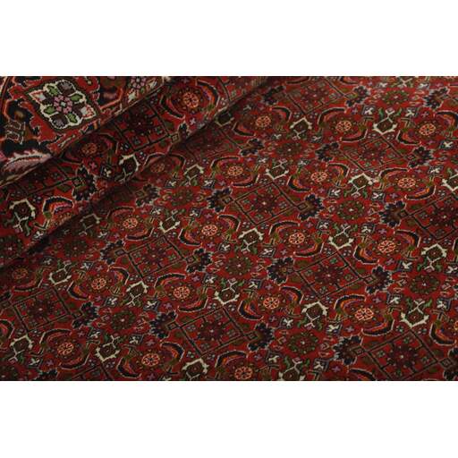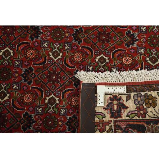 Bidjar est une ville d'environ 50 000 habitants située dans la province du Kurdistan, au nord-ouest du pays. Elle se trouve dans une vallée fertile entourée de montagnes arides et ne possède aucun monument important. La ville sert principalement de centre commercial pour les villages environnants. Son histoire récente est dramatique, car la ville a été occupée d'abord par les Russes, puis par les Turcs, pendant la Première Guerre mondiale, ce qui a entraîné une famine qui a considérablement réduit la population. Ces événements se reflètent dans la production de tapis de la ville. Avant la Première Guerre mondiale, les tapis étaient noués grossièrement mais fermement, avec une chaîne et une trame en laine. Plus tard, ils sont devenus plus fins et avaient des bases en coton. Les motifs Bidjar sont souvent Herati, mais parfois on peut voir un motif Mahi. Les couleurs sont généralement des rouges clairs avec une bordure légère. Les tapis Bidjar sont si fortement noués que vous risquez de casser les nœuds si vous les pliez ensemble avec le poil tourné vers l'intérieur. Lorsque vous pliez les tapis Bidjar, c'est donc toujours avec le poil tourné vers l'extérieur. On sent clairement que la laine utilisée dans un tapis Bidjar est bien plus importante que dans la plupart des autres tapis. Ils sont beaucoup plus lourds et ne sont pas aussi faciles à déplacer lorsqu'ils sont posés sur le sol.
