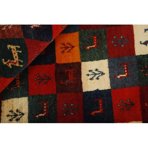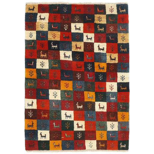 Gabbeh Fine est le nom d'un tapis spécial de haute qualité, fabriqué à partir de laine filée à la main et teinte avec des colorants végétaux. Le Gabbeh Fine est tissé par les tribus Lori et Kashghai. Il est grossièrement tissé, avec des couleurs claires et un poil épais. La plupart des tapis Gabbeh sont vendus dans les bazars de Shiraz. Les extrémités sont des kelims qui ont été repoussés et cousus. Les motifs sont le plus souvent géométriques, bien que les Gabbeh Kashghai affichent parfois des motifs dans leurs tapis plus fins. On peut parfois voir des motifs figuratifs ; des chèvres, des chameaux et des lions, recouverts de petits motifs géométriques, et des copies de reliefs de Persépolis (la principale ville de la dynastie achéménide, près de Shiraz). Les couleurs typiques sont le beige, le marron, le rouge, l'orange et le bleu foncé. Les tapis Gabbeh sont fabriqués par les tribus nomades et les habitants du sud de l'Iran. Les tribus Khasqai et Lori sont les plus connues pour leurs productions. En ce qui concerne les motifs et les combinaisons de couleurs, les tapis Gabbeh sont sans aucun doute les plus imprévisibles des tapis persans. Le style nomade est simple et spartiate, des qualités qui rendent ces tapis si variés et passionnants. Les couleurs pures et attrayantes et les figures simples du tapis Gabbeh s'adaptent au style de la maison moderne.
