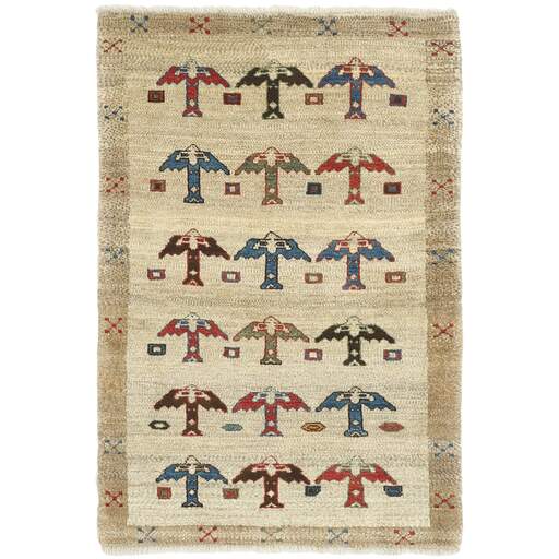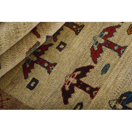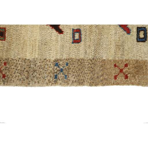 Gabbeh Fine est le nom d'un tapis spécial de haute qualité, fabriqué à partir de laine filée à la main et teinte avec des colorants végétaux. Le Gabbeh Fine est tissé par les tribus Lori et Kashghai. Il est grossièrement tissé, avec des couleurs claires et un poil épais. La plupart des tapis Gabbeh sont vendus dans les bazars de Shiraz. Les extrémités sont des kelims qui ont été repoussés et cousus. Les motifs sont le plus souvent géométriques, bien que les Gabbeh Kashghai affichent parfois des motifs dans leurs tapis plus fins. On peut parfois voir des motifs figuratifs ; des chèvres, des chameaux et des lions, recouverts de petits motifs géométriques, et des copies de reliefs de Persépolis (la principale ville de la dynastie achéménide, près de Shiraz). Les couleurs typiques sont le beige, le marron, le rouge, l'orange et le bleu foncé. Les tapis Gabbeh sont fabriqués par les tribus nomades et les habitants du sud de l'Iran. Les tribus Khasqai et Lori sont les plus connues pour leurs productions. En ce qui concerne les motifs et les combinaisons de couleurs, les tapis Gabbeh sont sans aucun doute les plus imprévisibles des tapis persans. Le style nomade est simple et spartiate, des qualités qui rendent ces tapis si variés et passionnants. Les couleurs pures et attrayantes et les figures simples du tapis Gabbeh s'adaptent au style de la maison moderne.