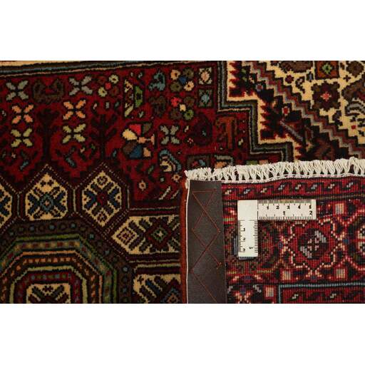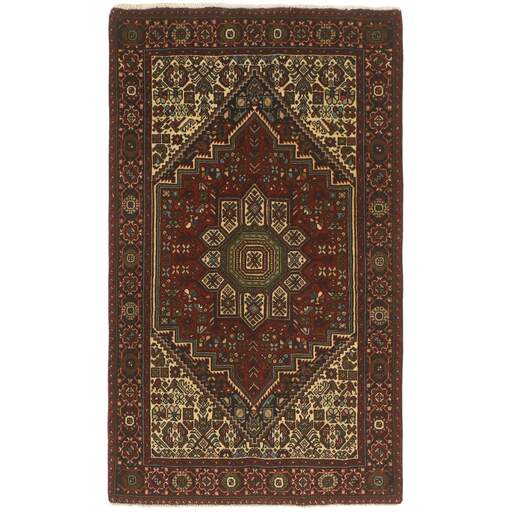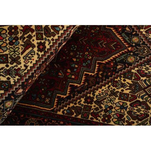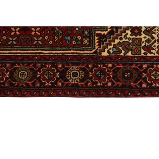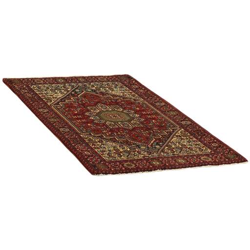 Ce tapis provient du district de Hamadan, un important centre de commerce de tapis et la zone de production de tapis la plus productive d'Iran. Hamadan est une grande ville comptant des centaines de milliers d'habitants. Comme Ekbatan, c'était la principale ville des rois achéménides. Elle abrite une population juive indigène et de nombreux monuments, dont les plus importants sont les tombeaux d'Esther et de Mordicai (au cœur des pèlerins juifs) et le tombeau d'Avicenne. Hamadan est une capitale provinciale. Deux types de tapis sont noués. L'un est le soi-disant « tapis de ville », également connu sous le nom de Shahrbaff. La production est moderne et largement contrôlée par l'État. La production villageoise, cependant, est beaucoup plus importante ; Hamadan est une ville de marché pour de nombreux villages producteurs de tapis qui ont chacun leur propre motif. Les plus importants sont Borchalu, Tuserkman, Memraban, Khamseh, Begardeh, Enjilas, Hosseinabad et Zandjan. Il existe une grande variété de motifs mais la qualité est très constante. Les couleurs sont fortes et souvent des couleurs végétales. Les motifs sont audacieux, bien qu'aléatoires, et Hosseinabad et Enjilas en particulier sont connus pour leurs motifs traversants. Les tapis ne mesurent généralement pas plus de 3 mètres sur 2.