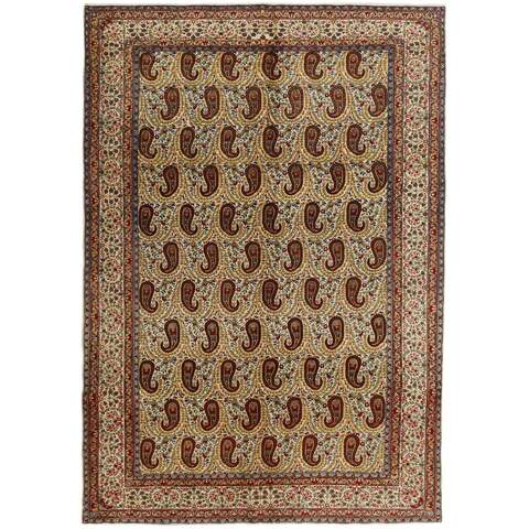 Ghom, ville d'un demi-million d'habitants, se trouve au sud de Téhéran, sur la route menant à la province de Markazi (centre). L'industrie du tapis de la ville ne s'est développée qu'après 1930, mais elle a acquis une bonne réputation. Comme il n'existe aucune tradition ou précédent sur lequel s'appuyer, les tisserands puisent leurs motifs dans différentes sources, d'où ils les transfèrent et les combinent. Certains motifs sont entièrement copiés et il n'est pas rare de voir des copies de tapis Joshqan ou Sirjan fabriquées à Ghom, mais elles sont beaucoup plus fines que les originales et réalisées avec un velours de soie. En outre, plusieurs variantes de médaillons et de motifs uniformes sont réalisées. Le velours est soit en soie avec chaîne et trame de soie, soit en laine, ou en laine mélangée à de la soie, avec une base en coton. Le nouage est généralement fin. Une large gamme de couleurs est utilisée, parfois dans des combinaisons qui semblent étranges aux Occidentaux. Un rose et un vert puissants sont particulièrement caractéristiques des tapis de soie.