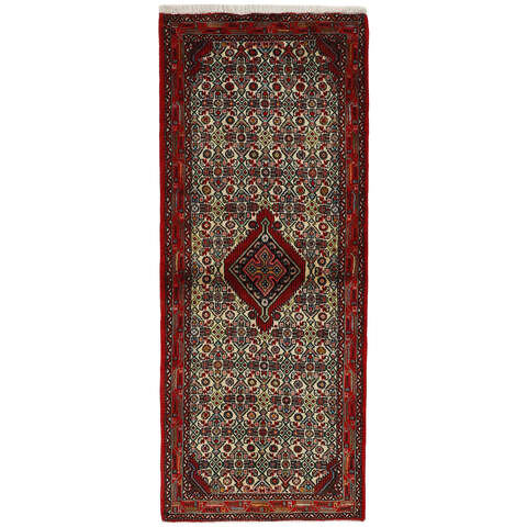Ce tapis provient du district de Hamadan, un important centre de commerce de tapis et la zone de production de tapis la plus productive d'Iran. Hamadan est une grande ville comptant des centaines de milliers d'habitants. Comme Ekbatan, c'était la principale ville des rois achéménides. Elle abrite une population juive indigène et de nombreux monuments, dont les plus importants sont les tombeaux d'Esther et de Mordicai (au cœur des pèlerins juifs) et le tombeau d'Avicenne. Hamadan est une capitale provinciale. Deux types de tapis sont noués. L'un est le soi-disant « tapis de ville », également connu sous le nom de Shahrbaff. La production est moderne et largement contrôlée par l'État. La production villageoise, cependant, est beaucoup plus importante ; Hamadan est une ville de marché pour de nombreux villages producteurs de tapis qui ont chacun leur propre motif. Les plus importants sont Borchalu, Tuserkman, Memraban, Khamseh, Begardeh, Enjilas, Hosseinabad et Zandjan. Il existe une grande variété de motifs mais la qualité est très constante. Les couleurs sont fortes et souvent des couleurs végétales. Les motifs sont audacieux, bien qu'aléatoires, et Hosseinabad et Enjilas en particulier sont connus pour leurs motifs traversants. Les tapis ne mesurent généralement pas plus de 3 mètres sur 2.